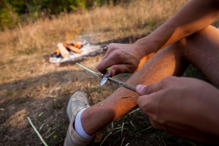 После создания зазубрин край дощечки подтачивают, чтобы он входил в топорец примерно на один сантиметр.