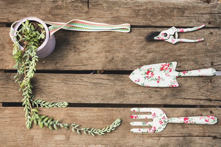 - Для работ понадобятся: лопата, грабли и садовые ножницы.